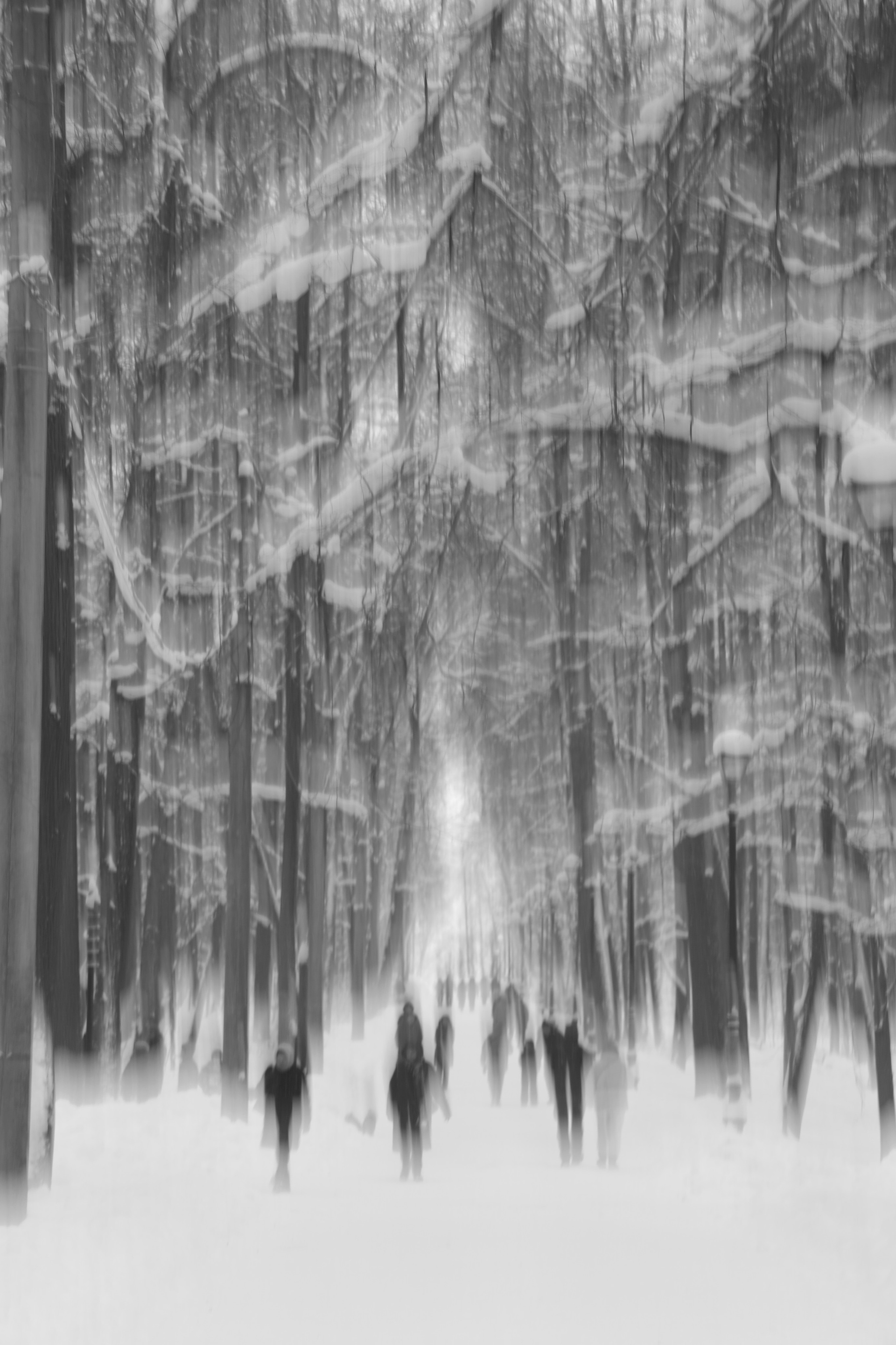 В этой серии наблюдение за доминантностью природы над человеком, его «растворением» в холодном зимнем пространстве.